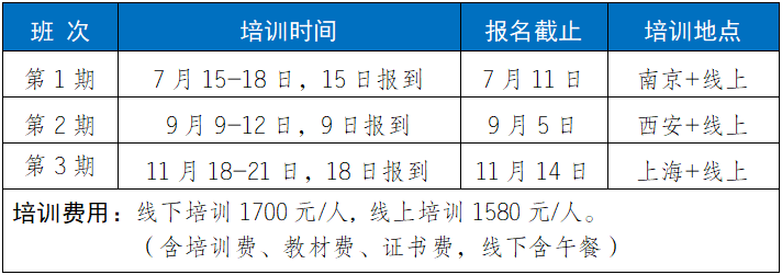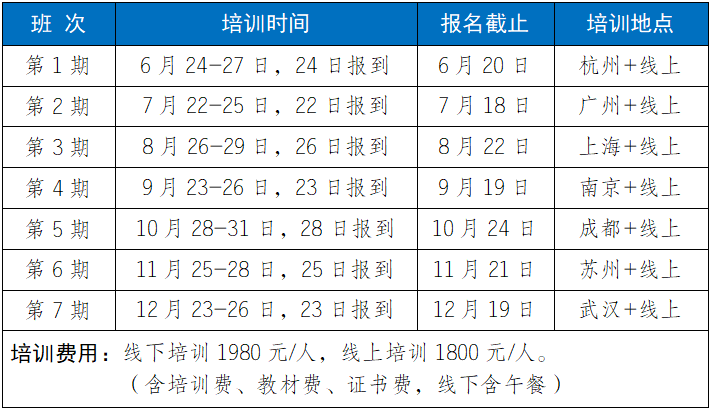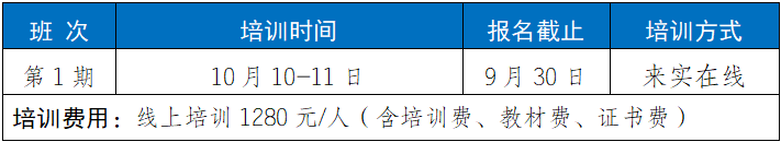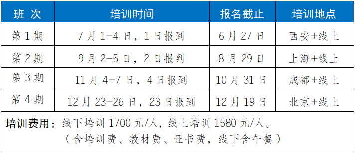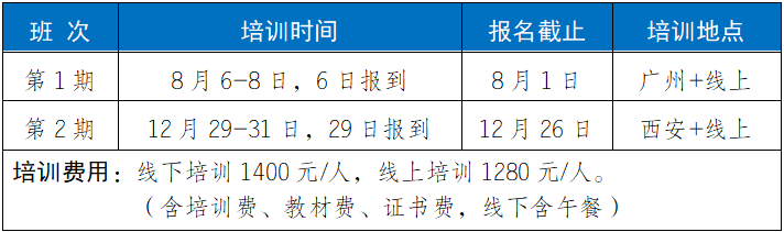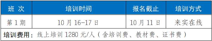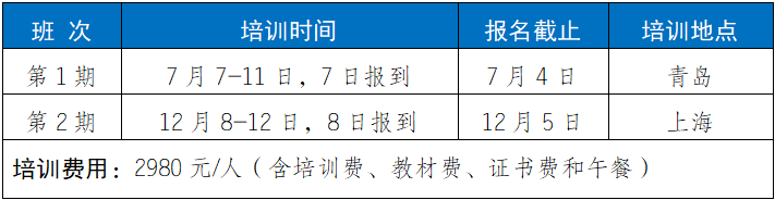 2.培训福利1)参加培训赠送正式出版的培训教材;2)每门培训课程开通之日起30天学习;3)培训结束考核合格颁发相应培训证书;4)针对工作中的实际问题提供免费在线答疑。