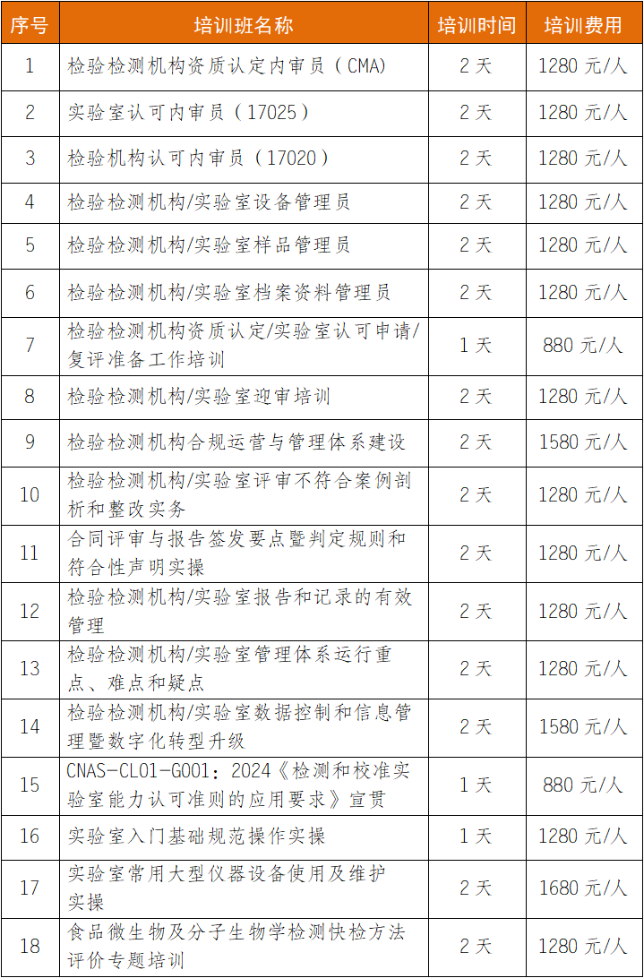 最全精品课程,建议收藏!2025年下半年检验检测机构/实验室培训计划